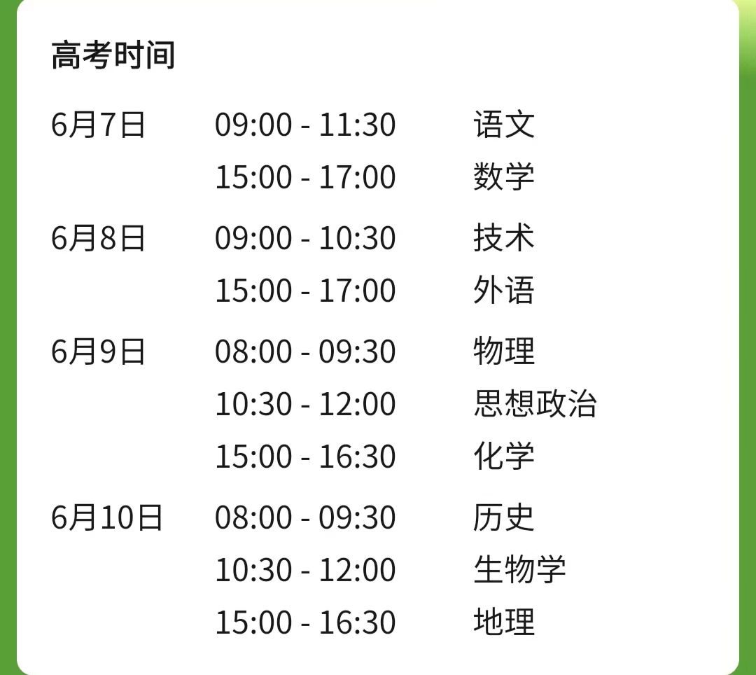 6月12—18日 | 网上填报志愿模拟练习 |